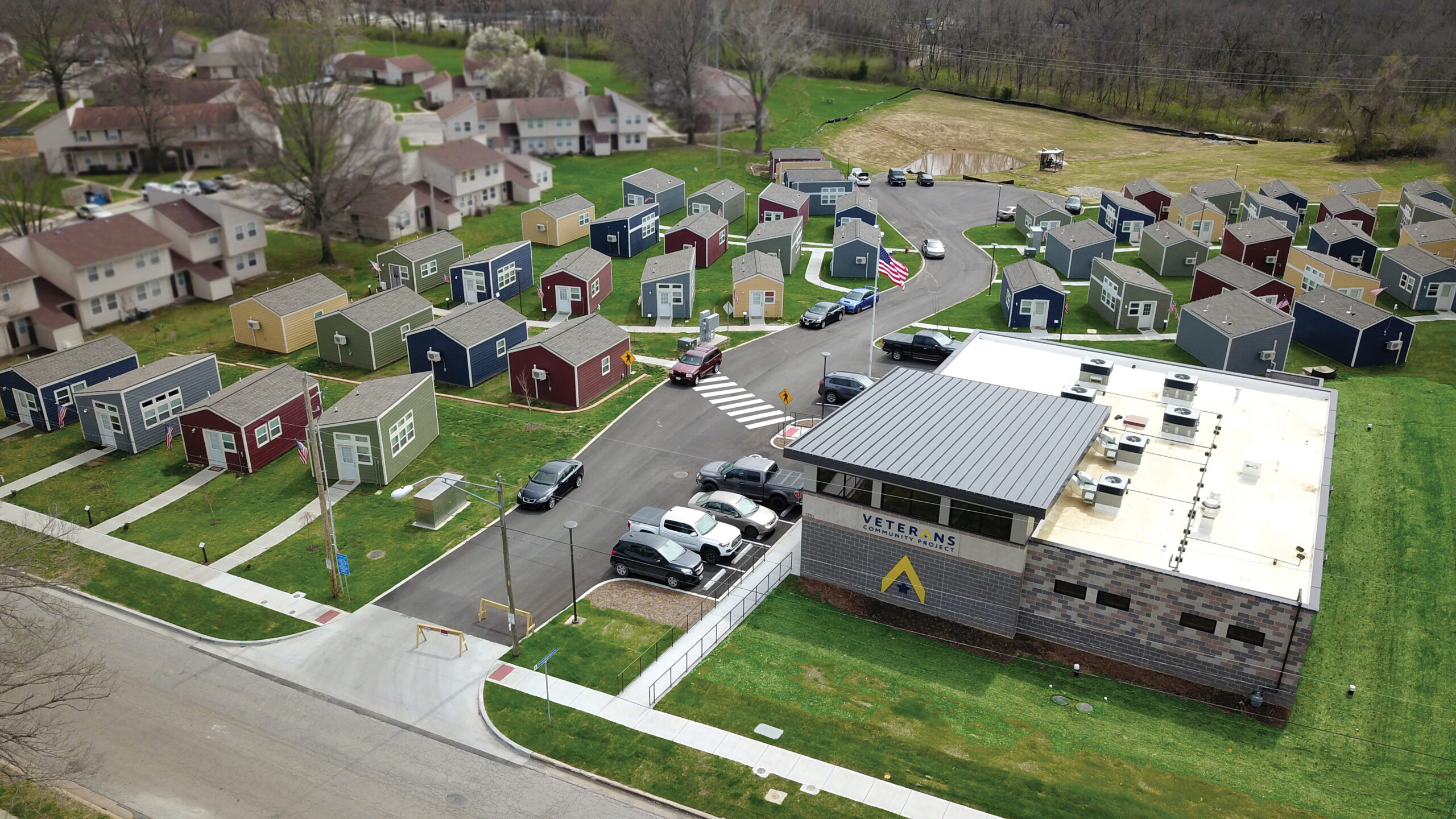 VCP Village - KC, located at 89th and Troost in Kansas City, Missouri, is an innovative community of 49 tiny houses for Veterans experiencing homelessness. The homes range in size from 240 to 320 square feet, meet all local city code requirements, and connect to city utility services. Approximately 70% of the Village construction was performed by community volunteers. Many Veterans arrive at VCP Village with little more than the pain, uncertainty, and loneliness of life on the streets. A tiny house provides everything he or she needs to live with dignity and safety, new furniture, appliances, housewares, bedding, food, and utilities, free of charge. More importantly, VCP Village provides sanctuary and the emotional space needed for the Veteran and VCP's Veteran Support Services team to thoroughly address the underlying causes of his or her homelessness.